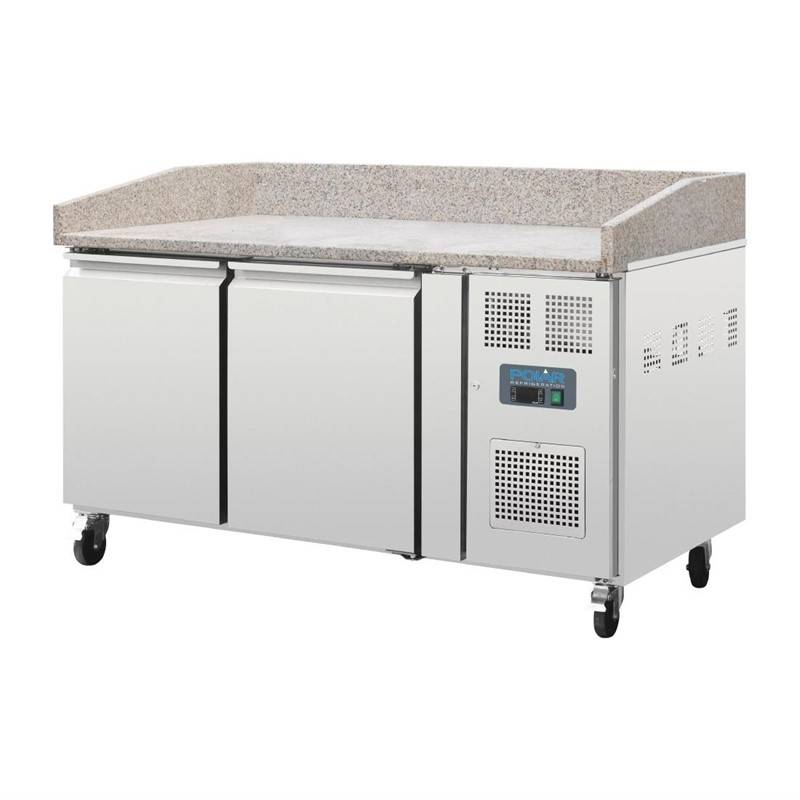 Tough and durable counter with marble work surface that provides a cold surface to roll out pizza dough. Chilled compartments keep ingredients fresh. Features ambient dough drawers. Patisserie tray (600 x 400mm) compatible. Compatible with Polar Refrigerated Countertop Servery Unit G611 or GD878.