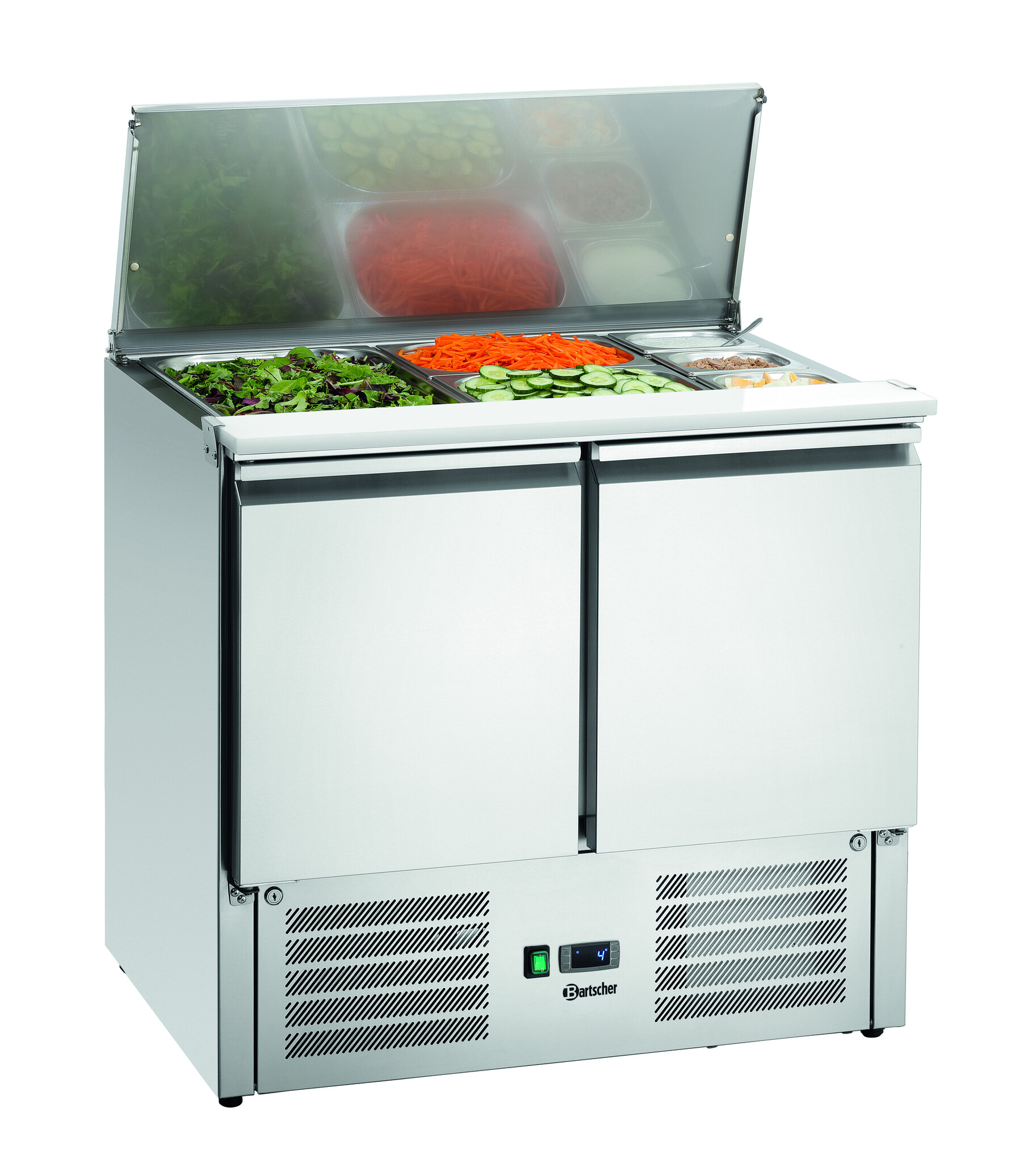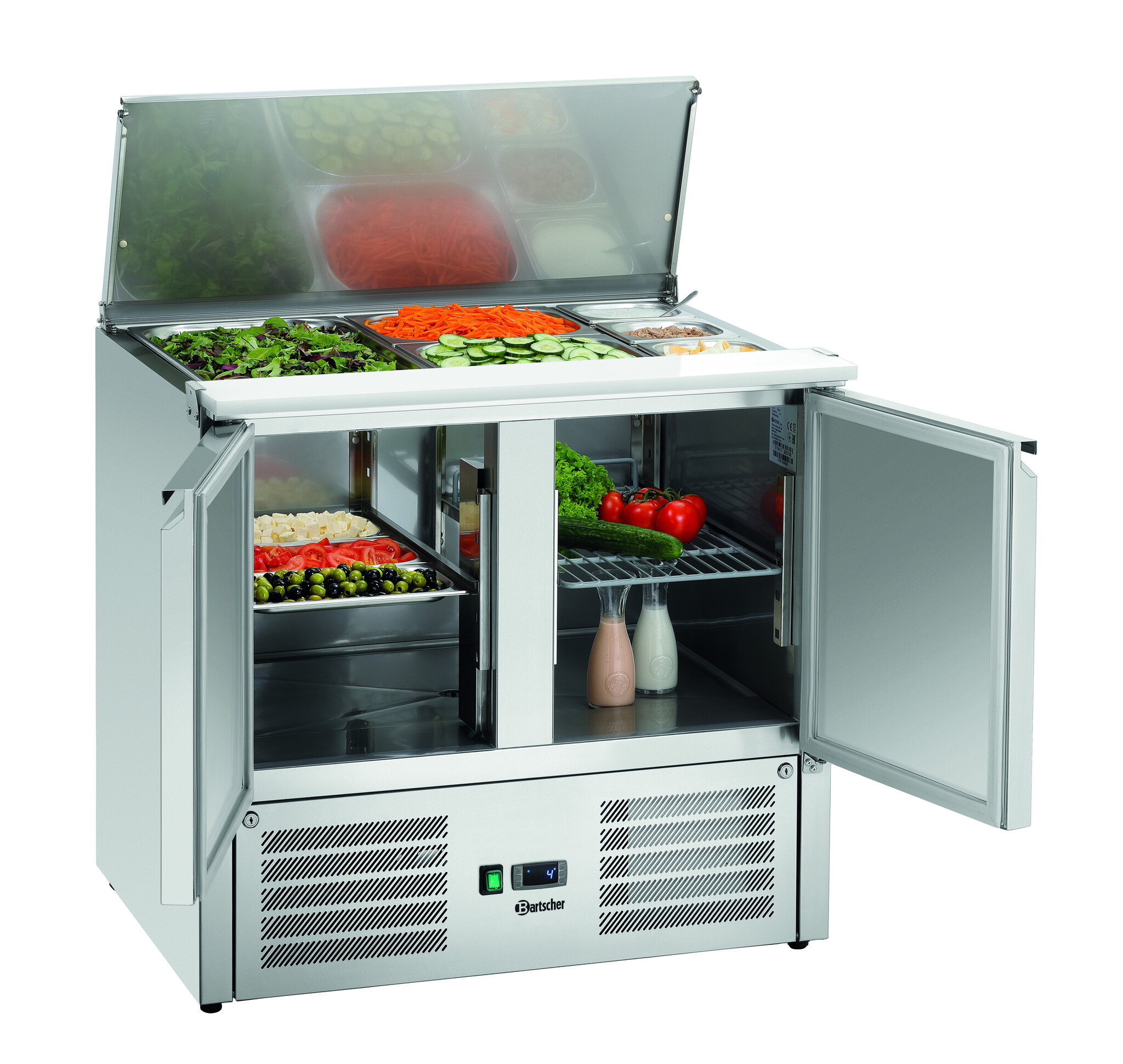 Stół chłodniczy sałatkowy 2-drzwiowy, 2 x 1/1 GN + 3 x 1/6 GN, 260L od 0 do 10°C, agregat na dole