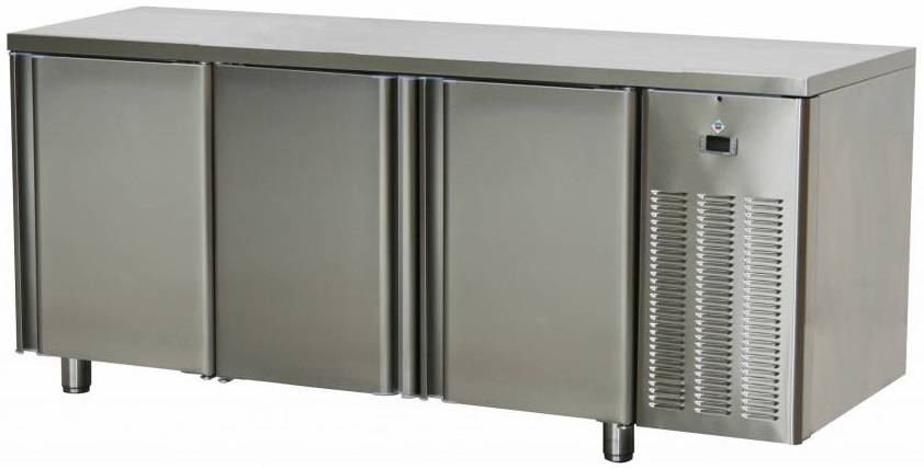 Tripple Door Refrigerated Table with Splashback 420 L, from -2 °C to 8 °C, Side-Mounted Compressor