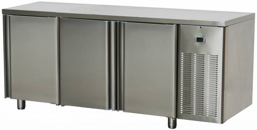 Tripple Door Refrigerated Table with Splashback and Sink 420 L, from -2 °C to 8 °C, Side-Mounted Compressor