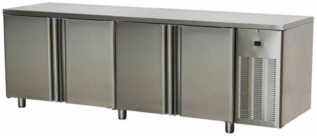 Four Door Freezer Table with Splashback 575 L, from -24 °C to -18 °C, Side-Mounted Compressor