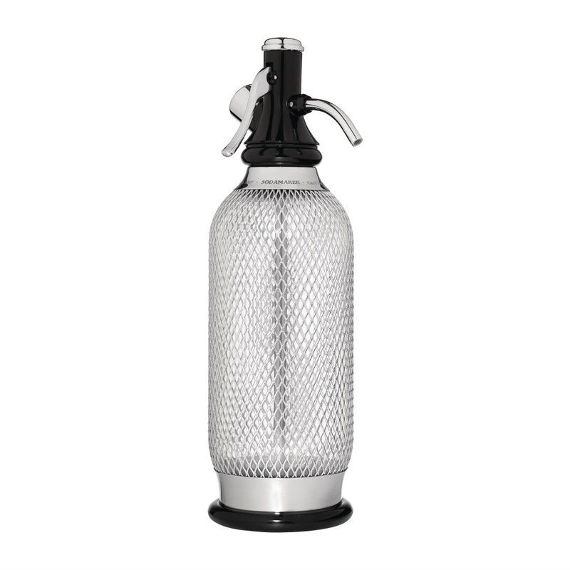 Dispenses sparkling soda water on demand. Stylish glossy finish with stainless steel mesh. Looks great behind the bar.