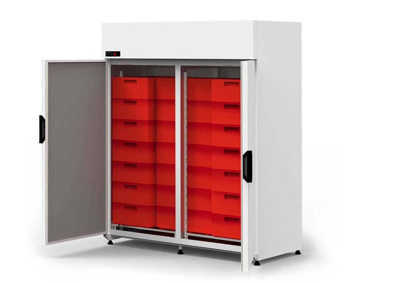 Szafa chłodnicza 2-drzwiowa od 1 do 10 °C, na 21 pojemników EURO 2, 1460 L, 1600x800x(h)2020 mm, biała
