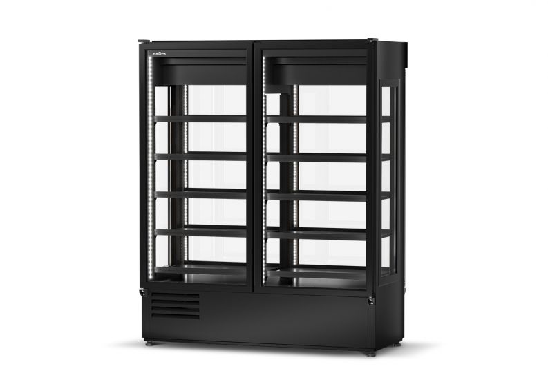 Szafa chłodnicza 2-drzwiowa przeszklona od 1 do 10 °C, 898 L, 1200x720x(h)2000 mm, czarny połysk