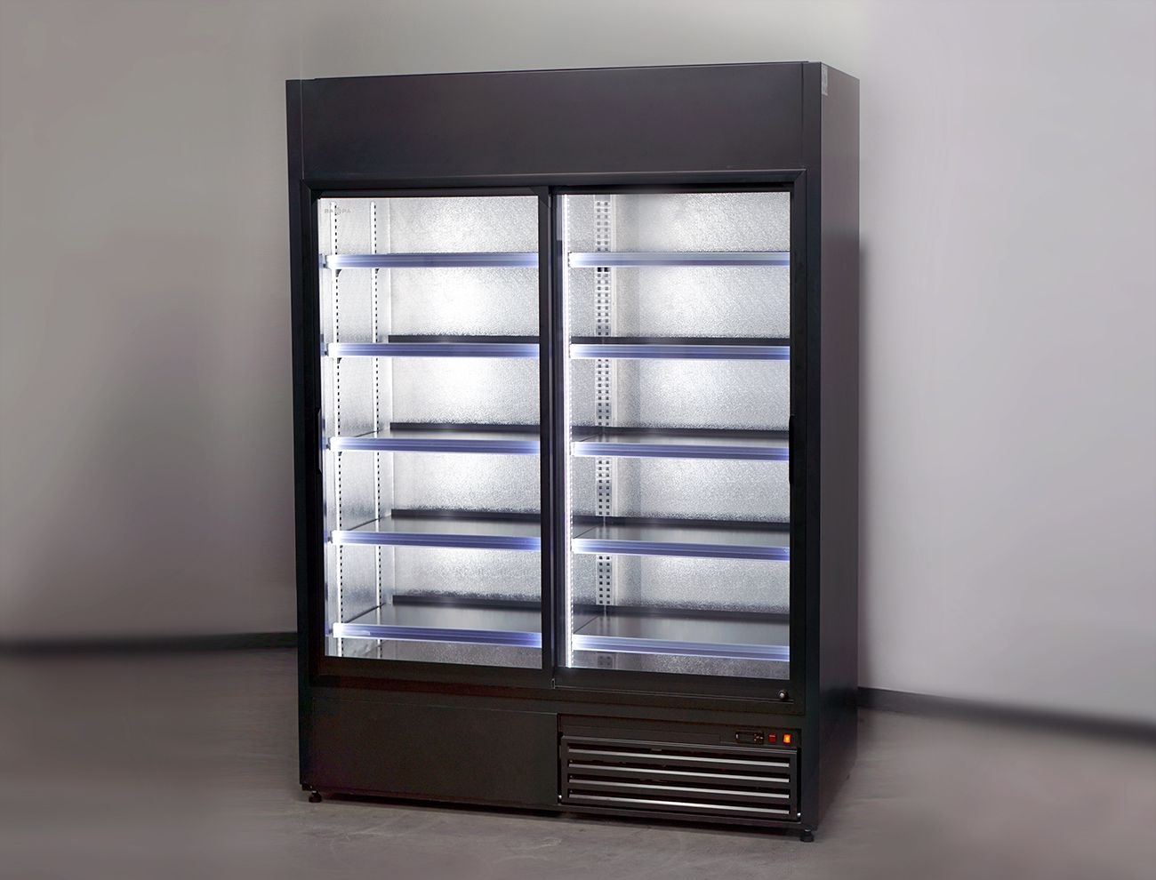 Szafa chłodnicza 2-drzwiowa przeszklona od 1 do 10 °C, 1242 L, 1600x720x(h)2000 mm, czarny półmat