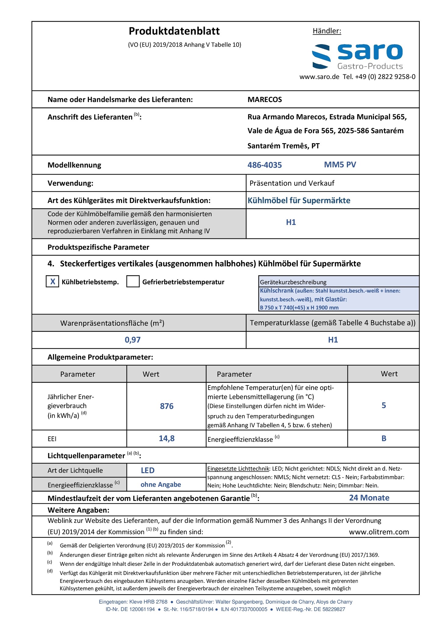 Szafa chłodnicza przeszklona 980 L, od 1 do 8 °C, biała