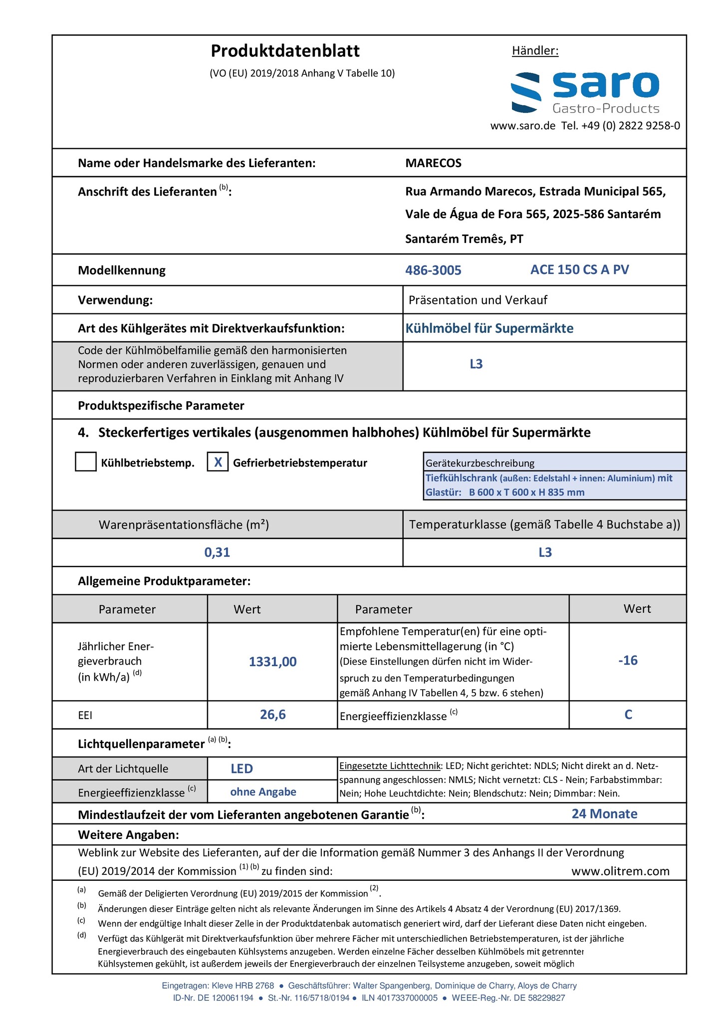 Szafa mroźnicza przeszklona 115 L, -22 °C do -18 °C