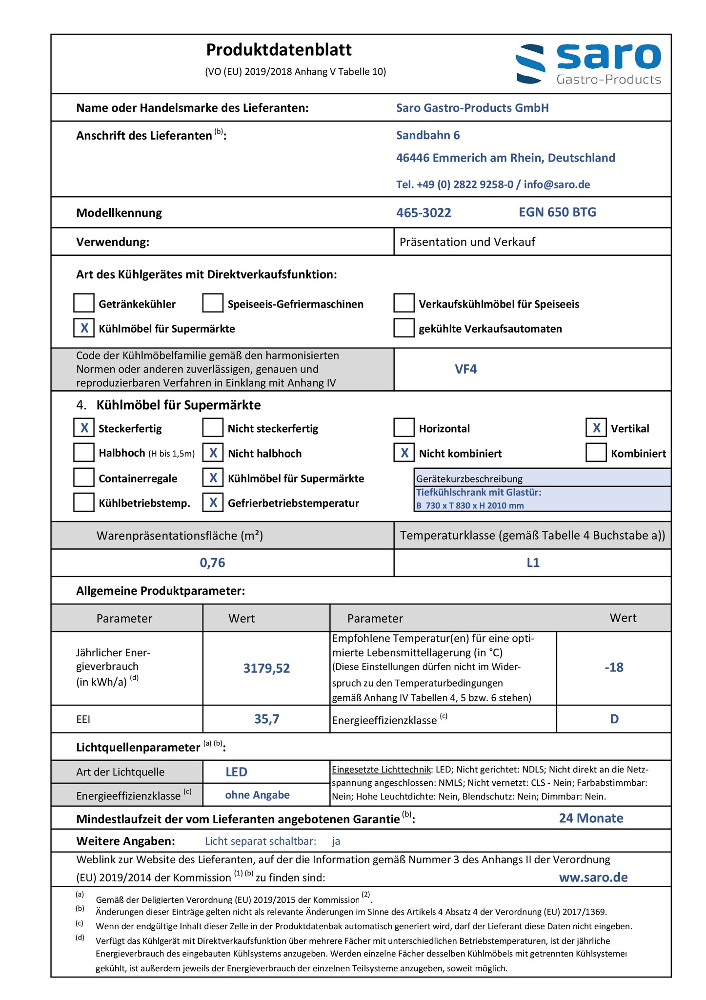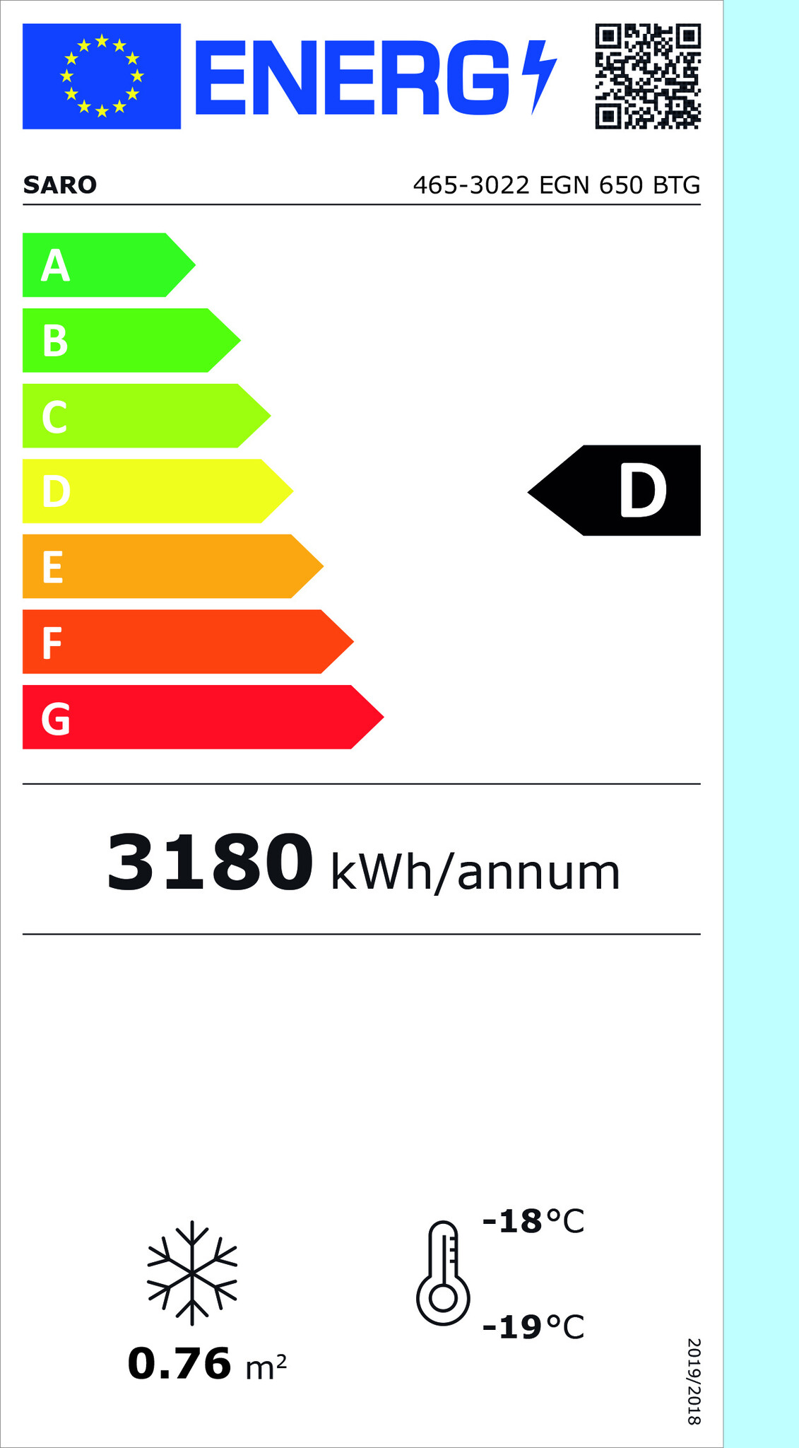 Szafa mroźnicza przeszklona 650 L, od -22 do -18 °C, srebrna