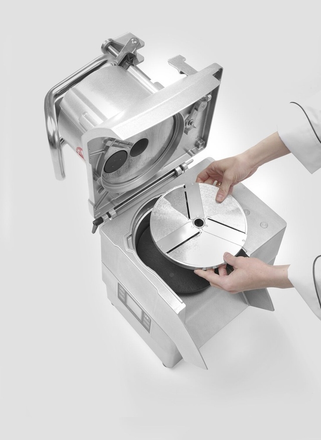 - Side output for slicedvegetables provides a better ergonomics of work even on a narrower worktop