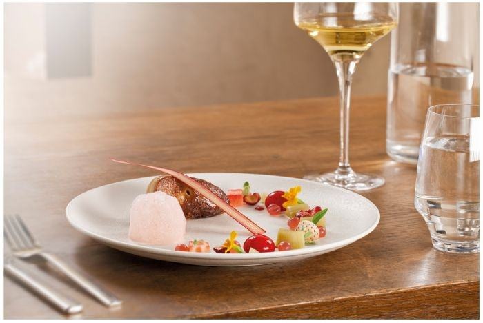 NEOFUSION takes its inspiration from mineral matter and comes in 6 different colour ways: Magma, Volcano, Ember, Stone, Terra and Sand, which can be combined with each other or with white porcelain. Each and every piece has the strength of porcelain and the look of ceramic due to a highly durable, hand-sprayed, non-porous glaze. Neofusion shows great contrasts between its raw appearance and the dishes’ refined ingredients, providing a spectacular culinary experience.