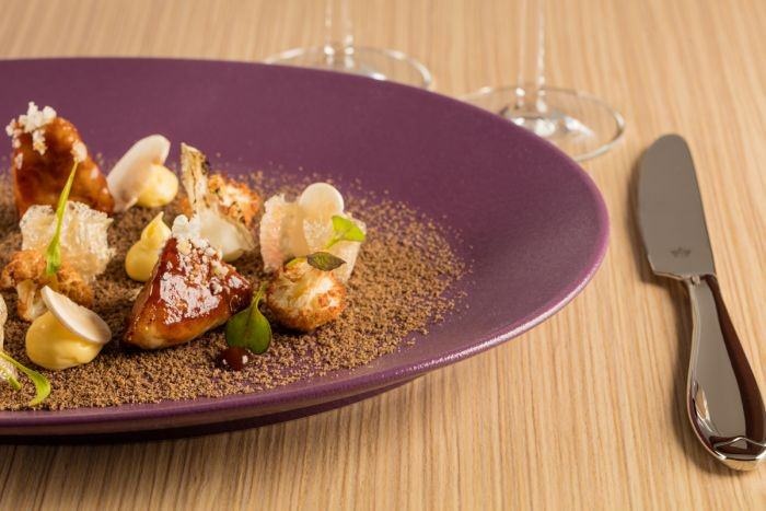 NEOFUSION takes its inspiration from mineral matter and comes in 6 different colour ways: Magma, Volcano, Ember, Stone, Terra and Sand, which can be combined with each other or with white porcelain. Each and every piece has the strength of porcelain and the look of ceramic due to a highly durable, hand-sprayed, non-porous glaze. Neofusion shows great contrasts between its raw appearance and the dishes’ refined ingredients, providing a spectacular culinary experience.