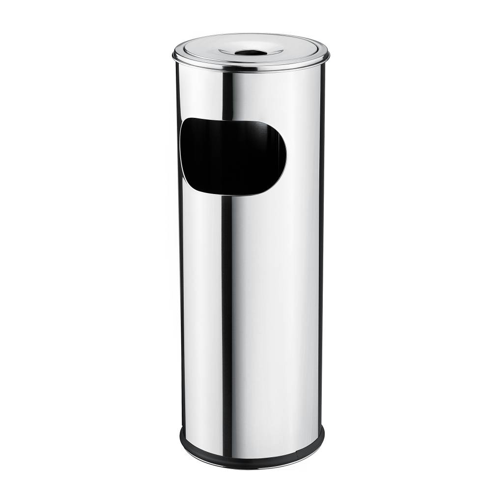 Garbage bin with ashtray made of high-level stainless steel 18/10 with a base protected with a rubber plastic strap.