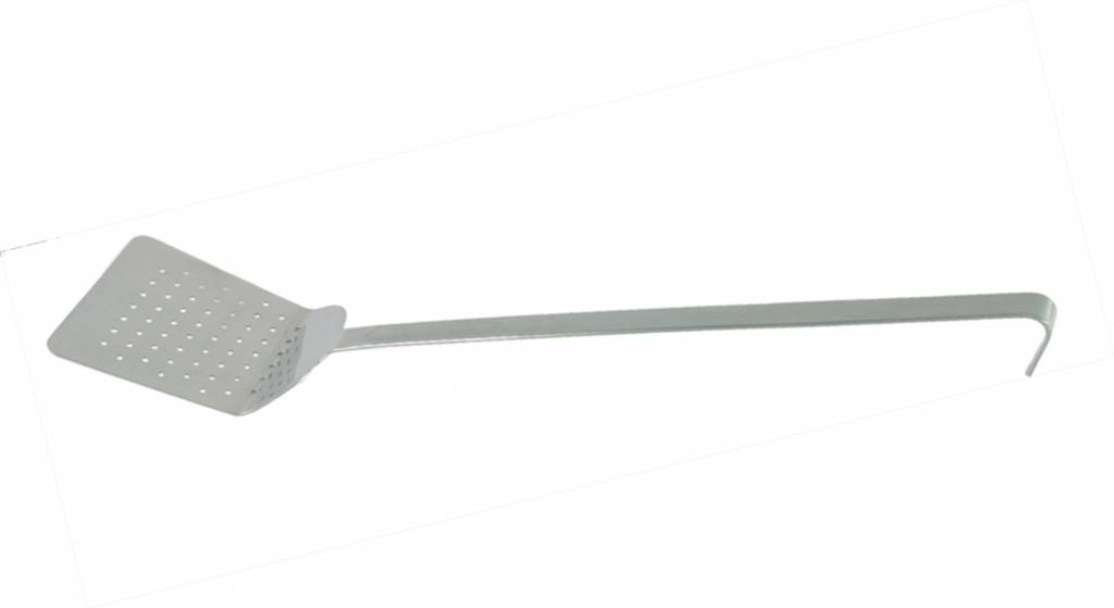 is made of highly polished stainless steel blade 18/10 frying. It has a satin finished handle hook for hanging. Perforation 3 mm. Blade size: 120 × 120 mm. Solid construction.
