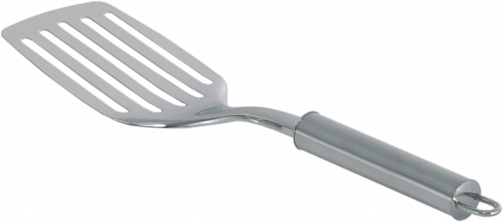 Device with a satin with a "tube" handle and with a hanging hook. Made of highly circular stainless steel 18/10. Dimensions of the blade: 100 × 80 mm.