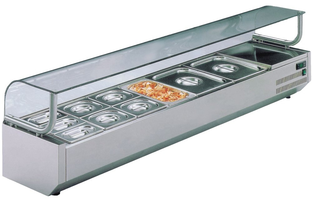 Top unit for storing ingredients 1 x GN 1/2; 2 x 1/3 GN; 2 x 1/4 GN; 4x 1/6 GN, 1600x370x(h)440mm 150W from 2 to 8°C