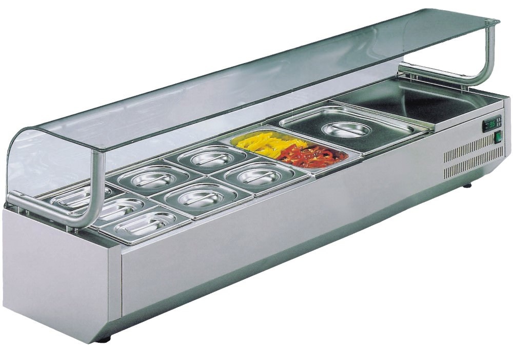 Top unit for storing ingredients 1 x GN 1/2; 2 x 1/3 GN; 4 x 1/6 GN, 1400x370x(h)440mm 150W from 2 to 8°C