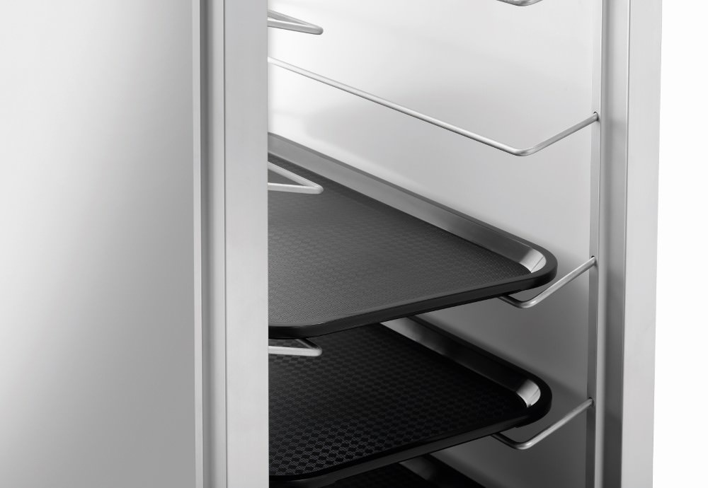 The sturdy clearing trolley impresses with its strong load capacity and the extra large trays in 1/1 GN format.