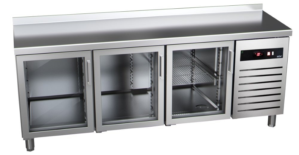 Tripple Door Refrigerated Table with Splashback 214 L, from -2 °C to 8 °C, Side-Mounted Compressor