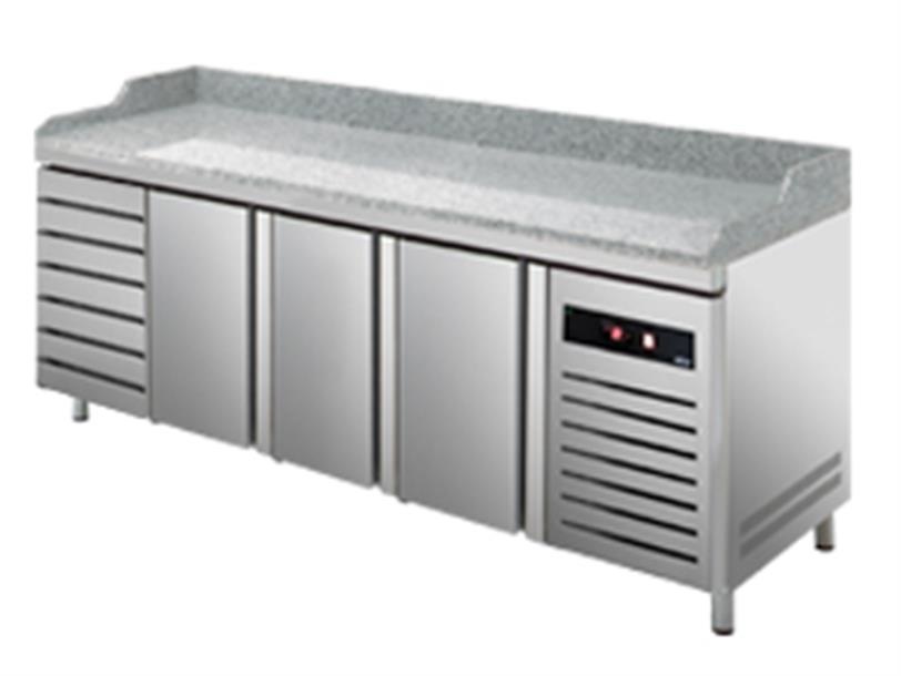 Tripple Doors Pizza Prep Table with 7 drawers, 588 L, Side-Mounted Compressor