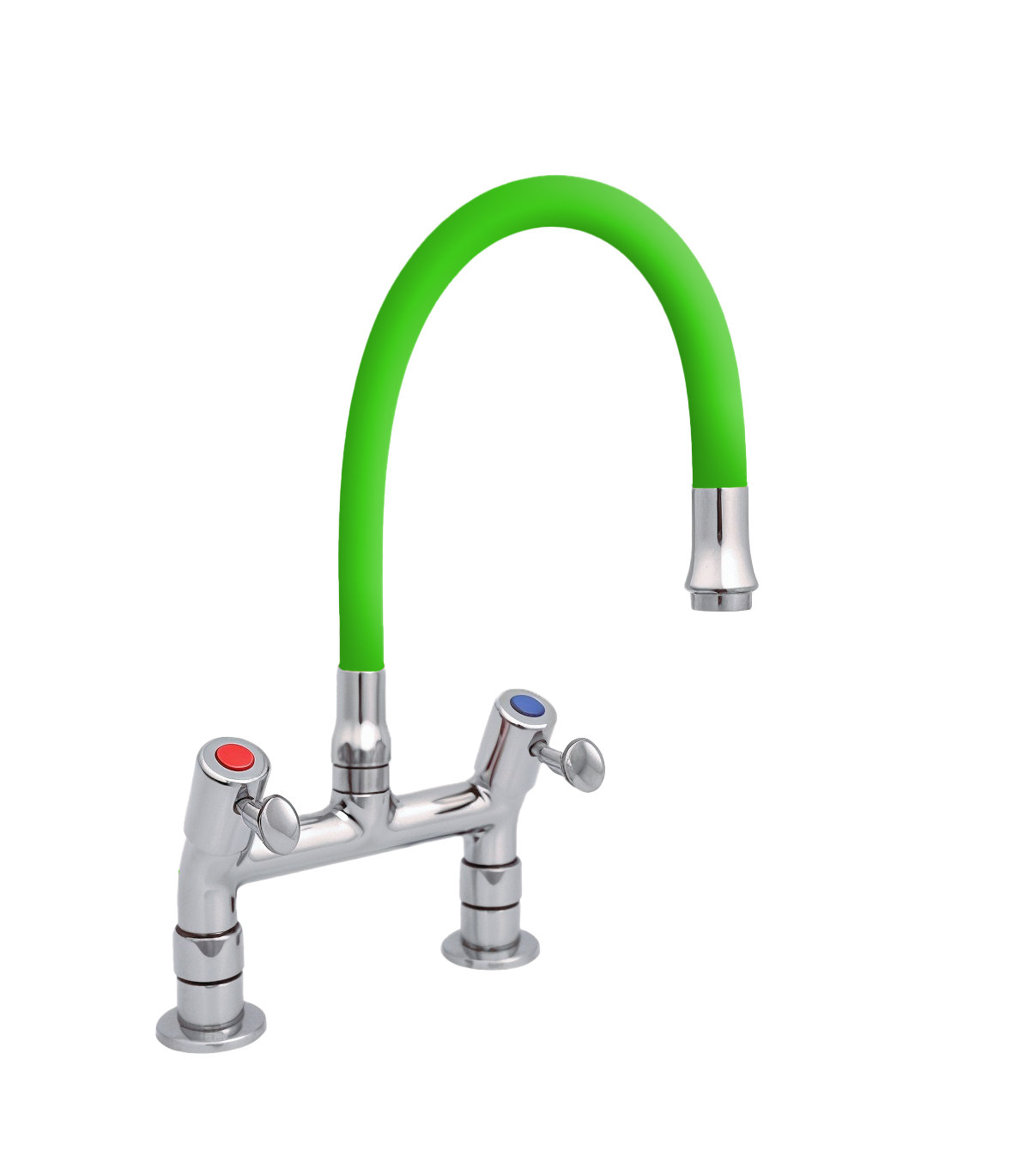 Two-hole freestanding sink tap with flexible spout, 530 mm long, green
