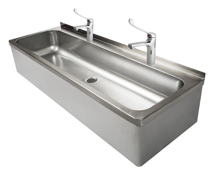 Two-Station Wash Basin, 1200x425(h)265 mm Central Drain with Medical Battery