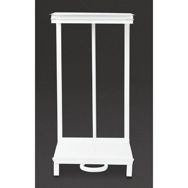 Free-standing sack holders available in white painted steel or full stainless steel options. Simple pedal operation allowing hands-free use, perfect for clearing scraps from plates and helping to maintain hygiene and prevent cross-contamination in the kitchen. Easy bag replacement. Flat pack/self assembly.