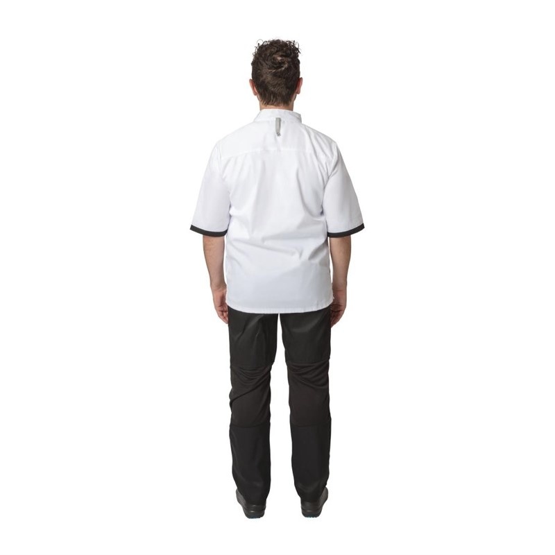 Balancing comfort, function and style. The slim fit and airflow panels make this jacket cool enough for front and back of house. Press stud fasteners for quick dressing.