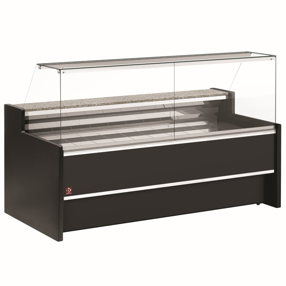 Ventilated refrigerated counter display with straight glass panel 90° with storage- BLACK