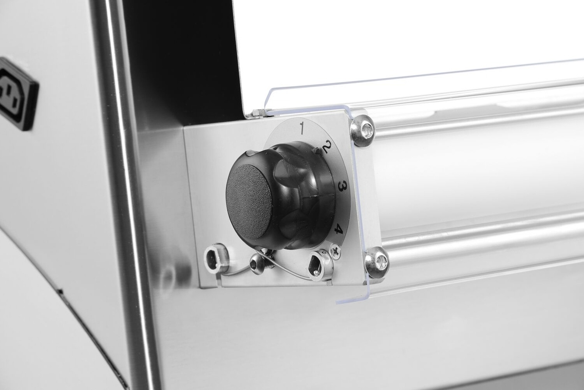 Wałkownica do ciasta do pizzy, elektryczna, Ø140-300 mm, 250W 230V, 475x375x(h)660mm z dwoma wałkami