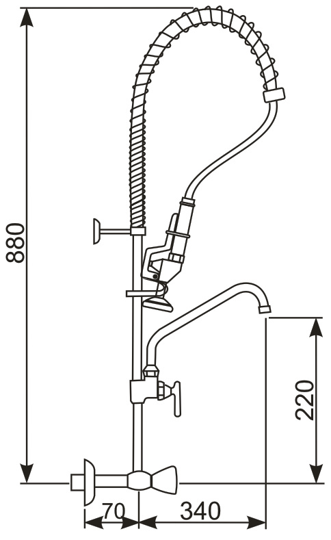 Wall Mounted Pre-Rinse Faucet with Spout 410 mm, Knobs