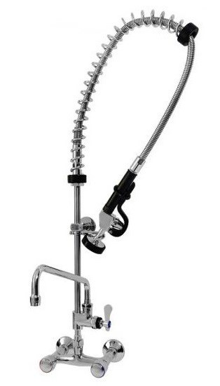 Wall Mounted Pre-Rinse Faucet with Spout, Knobs and Slide Heads