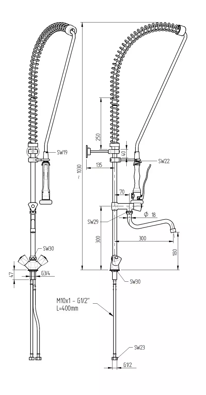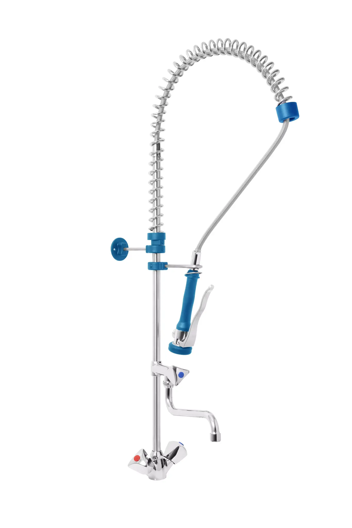Wall-mounted tabletop tap with sprayer and spout, blue