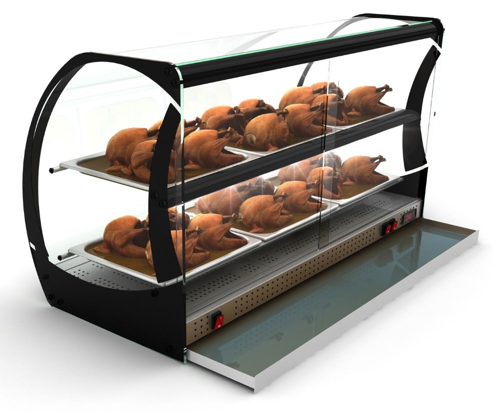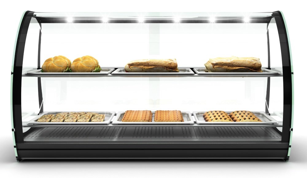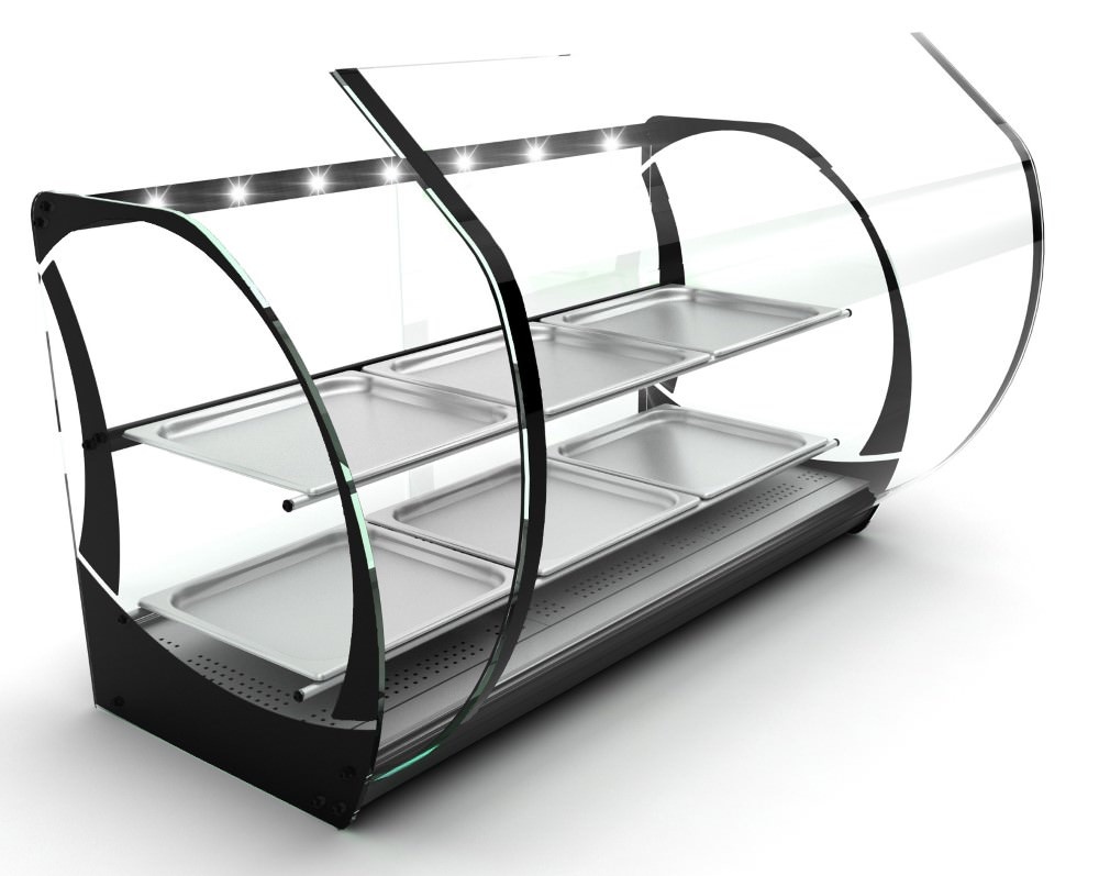 suitable for many various products: Sandwiches, pastry, roasts and much more • temperature range 30°C-90°C • digital temperature display • sliding doors on the back • long-living LED lighting on every level for more attention • increase your sales through ideal visibility of your products • all glasses strengthened • hinged front glass • large water tray prevents the food from drying out • incl. 6x 2/3 GN x 20 mm containersSpecifications