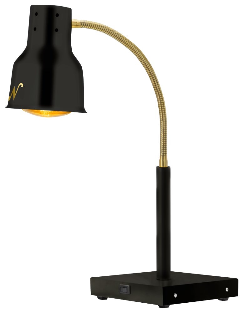 flexible arm with hygienic plastic hose • switch protected against unintended switching • lamp shade matt black outside, gold painted inside • incl. infra-red bulb (white light)Specifications