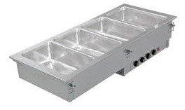 - The chambers are adapted to receive therein a container GN 1/1 and controlled by separate analog thermostats. Independent control allows easy temperature adjustment to different products served in the various chambers.