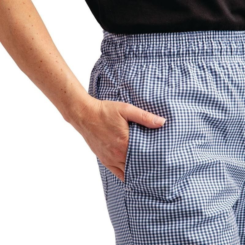 In an XXL size, these stylish and highly durable unisex trousers from Whites feature an extra wide waistband for a more comfortable fit. Available with a striking black check pattern, these trousers are stylish as well as comfortable, making them the perfect work wear for staff working within a busy kitchen or food preparation environment. These chef trousers have no buttons to break ensuring they always look in as new condition.