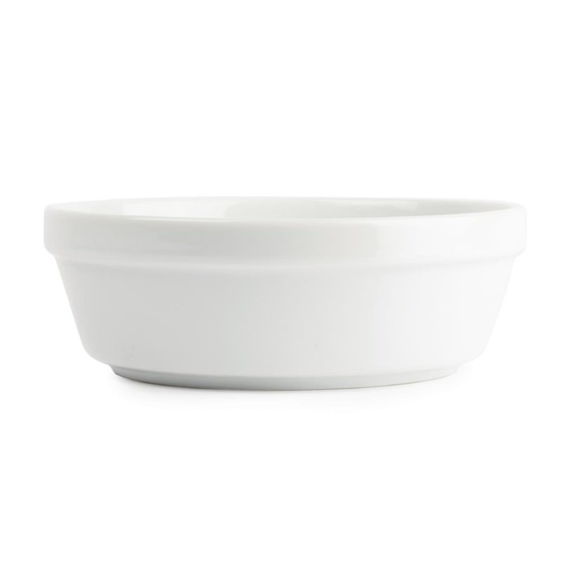 Our great value pure white porcelain rounded 1 3/4x 5 1/2x 5 1/2" pie bowls by Olympia are fully vitrified for heat and shock resistance, the ideal crockery for hotels which want simplicity.