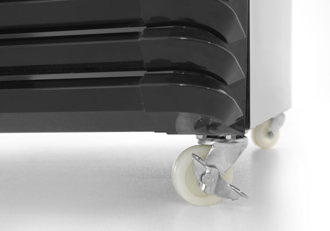Made of stainless steel, aluminium and polypropylene. Doors fitted with triple glazing of which one layer is tempered. Forced air cooling with auto-defrost, compressor placed underneath the chamber. With LED lighting in the chamber and in the lightbox. Fitted with 4 castors of which 2 have brakes. Digital temperature controller and display. Climate class: N-ST.