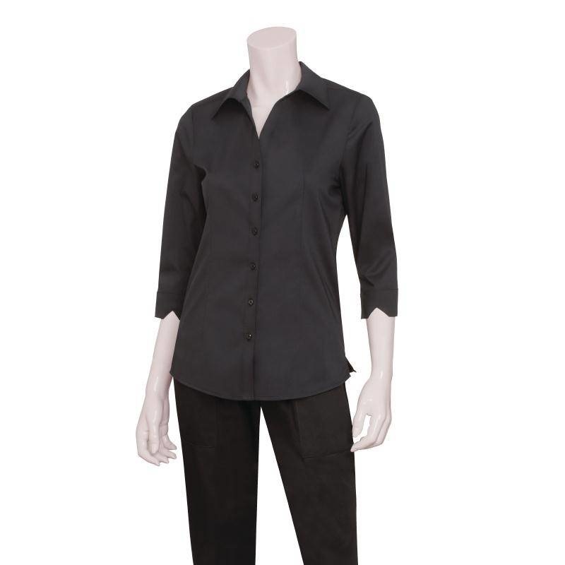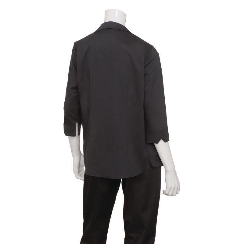 The Chef Works black ladies shirt is perfect for front of house wear. Featuring three quarter length sleeves, this shirt is a practical solutions to having sleeves which get wet or in the way when serving customers.