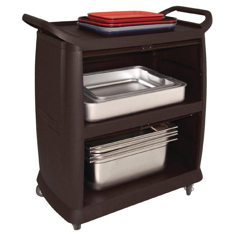 Sturdy, durable and modern design suitable for restaurant, hotel and institutional applications. Features up and over sliding doors for concealing or protecting loads.
