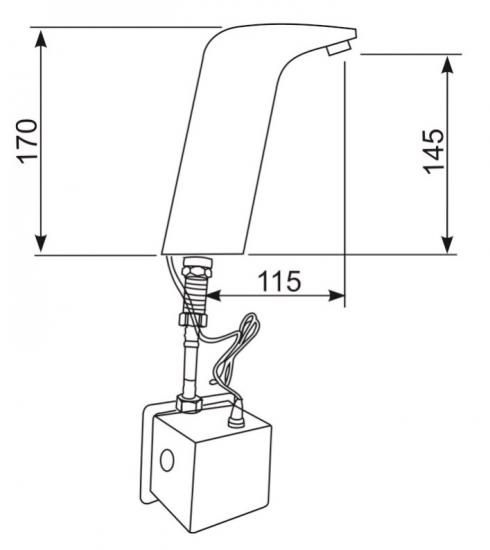 The electronic faucet standing cell controlled. Connection to the cold water or hot mixed. Supply standard alkaline batteries 4 x 1.5V. 1/2 ".