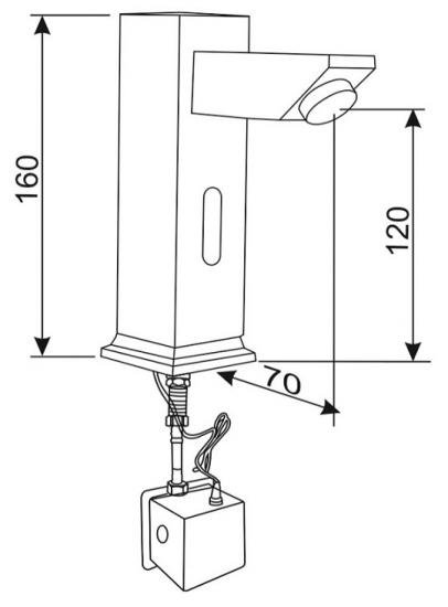 The electronic faucet standing cell controlled. Connection to the cold water or hot mixed. Supply standard alkaline batteries 4 x 1.5V. 1/2 ".