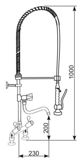 Twin Pedestal Pre Rinse Spray with Slide Heads and Spout, Height 1000 mm