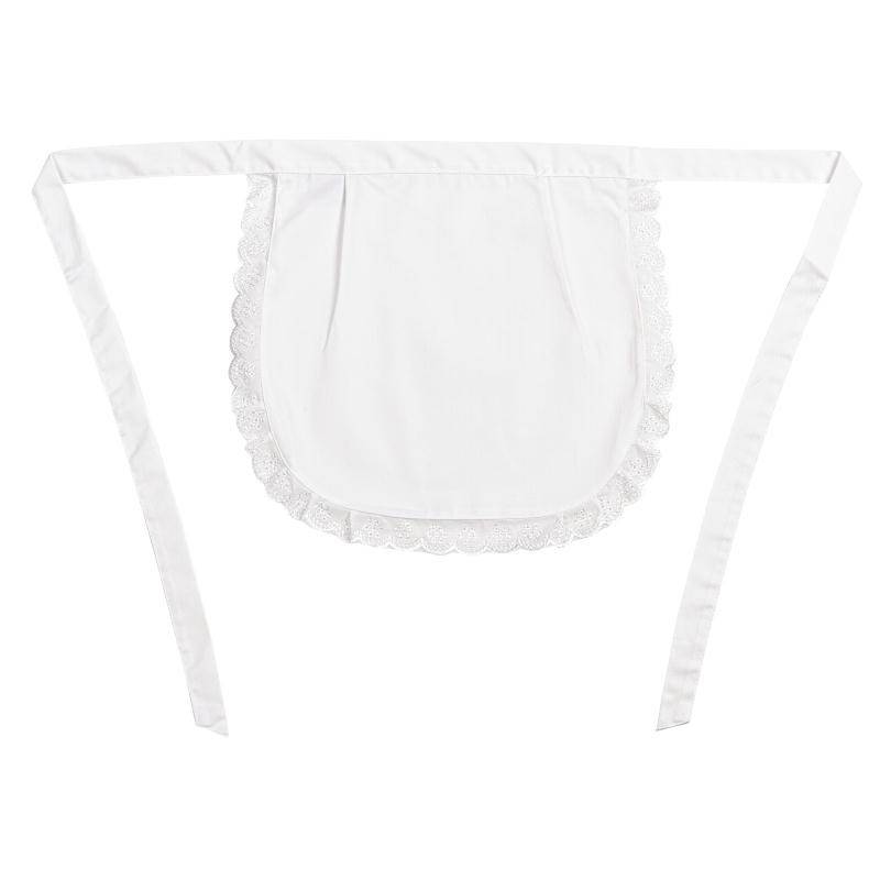 Feminine easy-care white polycotton waitress apron with broderie anglaise frill, one size fits all, great housekeeping and cafe aprons.
