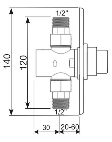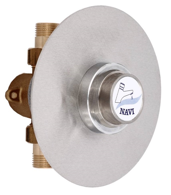 Self-closing urinal valve, concealed. Water flow time approx. 5 seconds. Round stainless steel rosette with a diameter of 140 mm. Anti-limescale mechanism. The valve is equipped with a strainer. Connections - 1/2 unions.