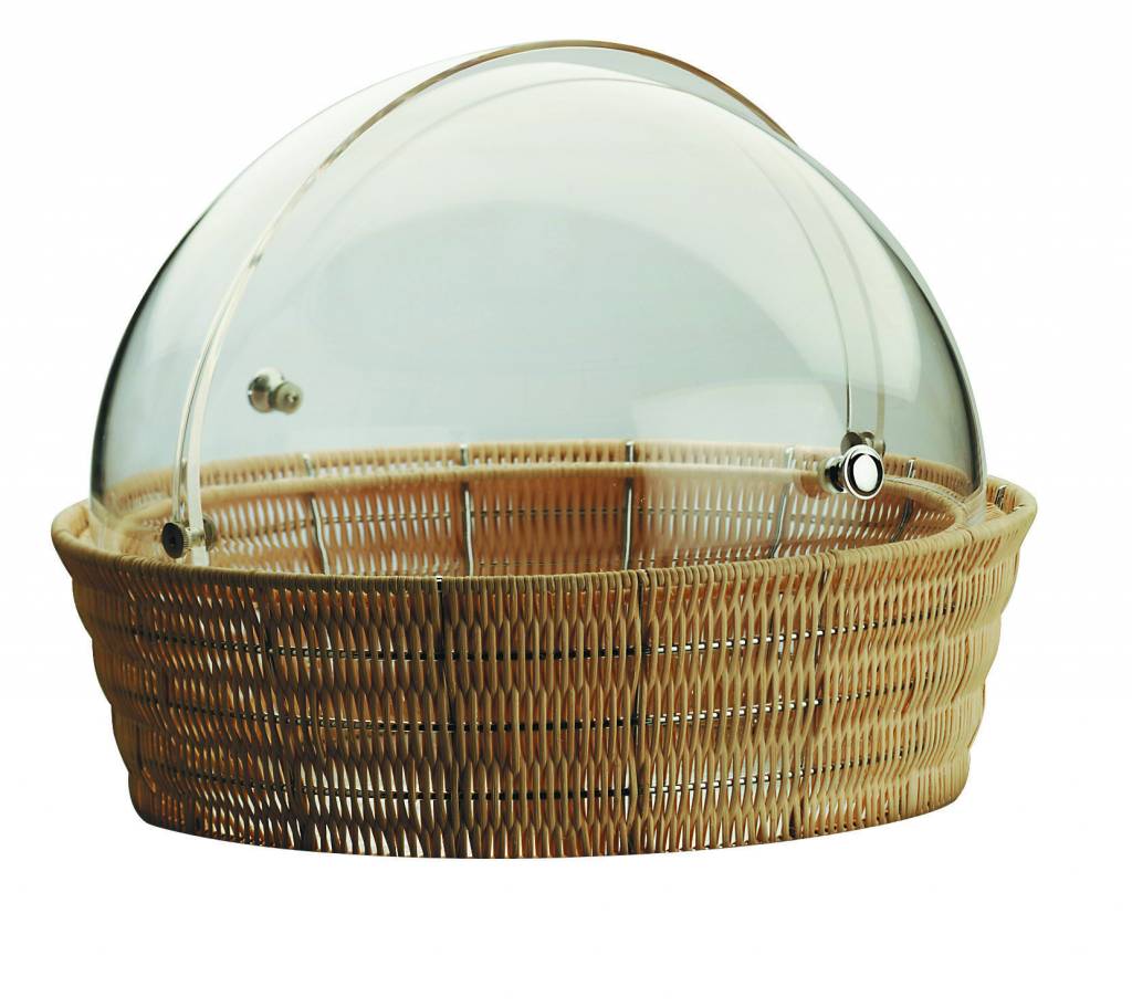 Kosz wykonany z naturalnego ratanu. Uchylna pokrywa wykonana z poliwęglanu. Średnica pokrywy: 410 mm.