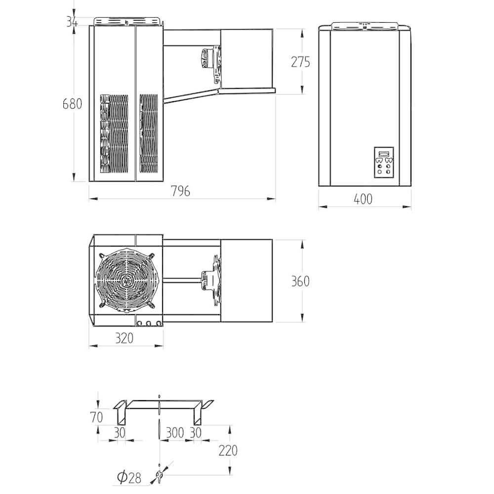 Agregat chłodniczy | 830W | 230V | -5°+5° | 400 x 320(796) x 714
