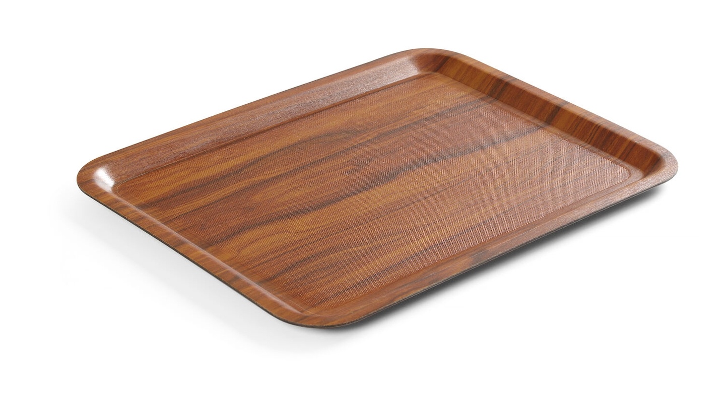 Antypoślizgowa prostokątna taca do serwowania 360 x 460 mm z drewna, brązowa