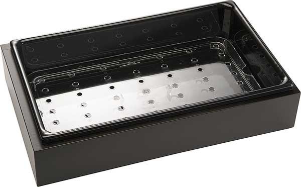 Bufetowy pojemnik na schładzanie produktów. W zestawie znajduje się taca z polistyrenu oraz ociekacz. Dostępny w dwóch kolorach.