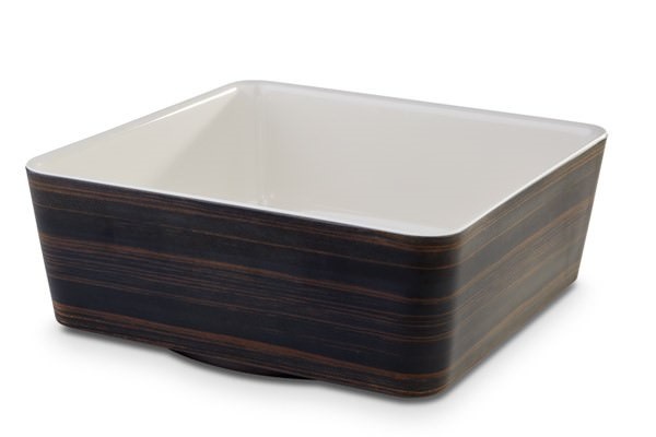 Miska kwadratowa z serii Universal wykonana z trwałej, błyszczącej melaminy. Z zewnątrz w kolorze imitującym drewno dębowe, wewnątrz kremowa. Można myć w zmywarkach i sztaplować. Wytrzymuje temperaturę od -30 do +70 stopni Celsjusza.